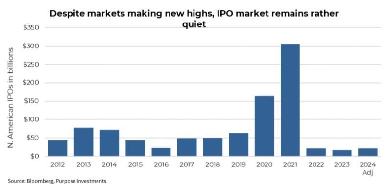 No doubt the rise of private equity has played a part. Companies are now staying private much longer in their growth stages and using private funding sources. If the equity market environment isn’t just right, many companies may continue to opt for private funding over tapping a less receptive public market.